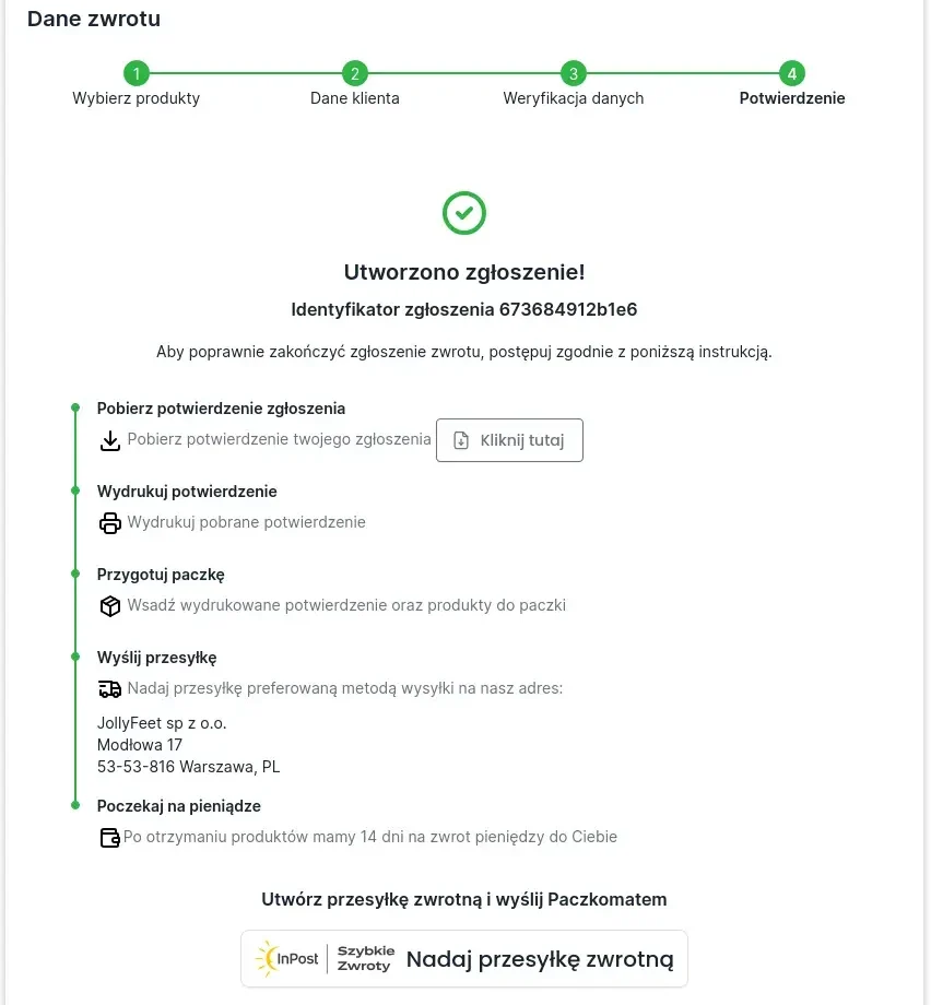 - Zaimplementować kod formularza zwrotów na stronie sklepu.
